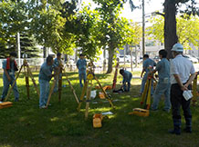 当日は、当社職員である測量技師が講師となり入社1年目から5年目の7名が参加し、設計の基礎となる測量の実務を経験しました。